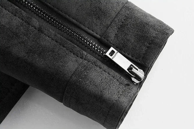 Matte finish with a vintage, worn-in character, built for comfort, style, and warmth, stand collar with snap closure for a structured look, quilted shoulder panels for subtle moto-inspired detail.